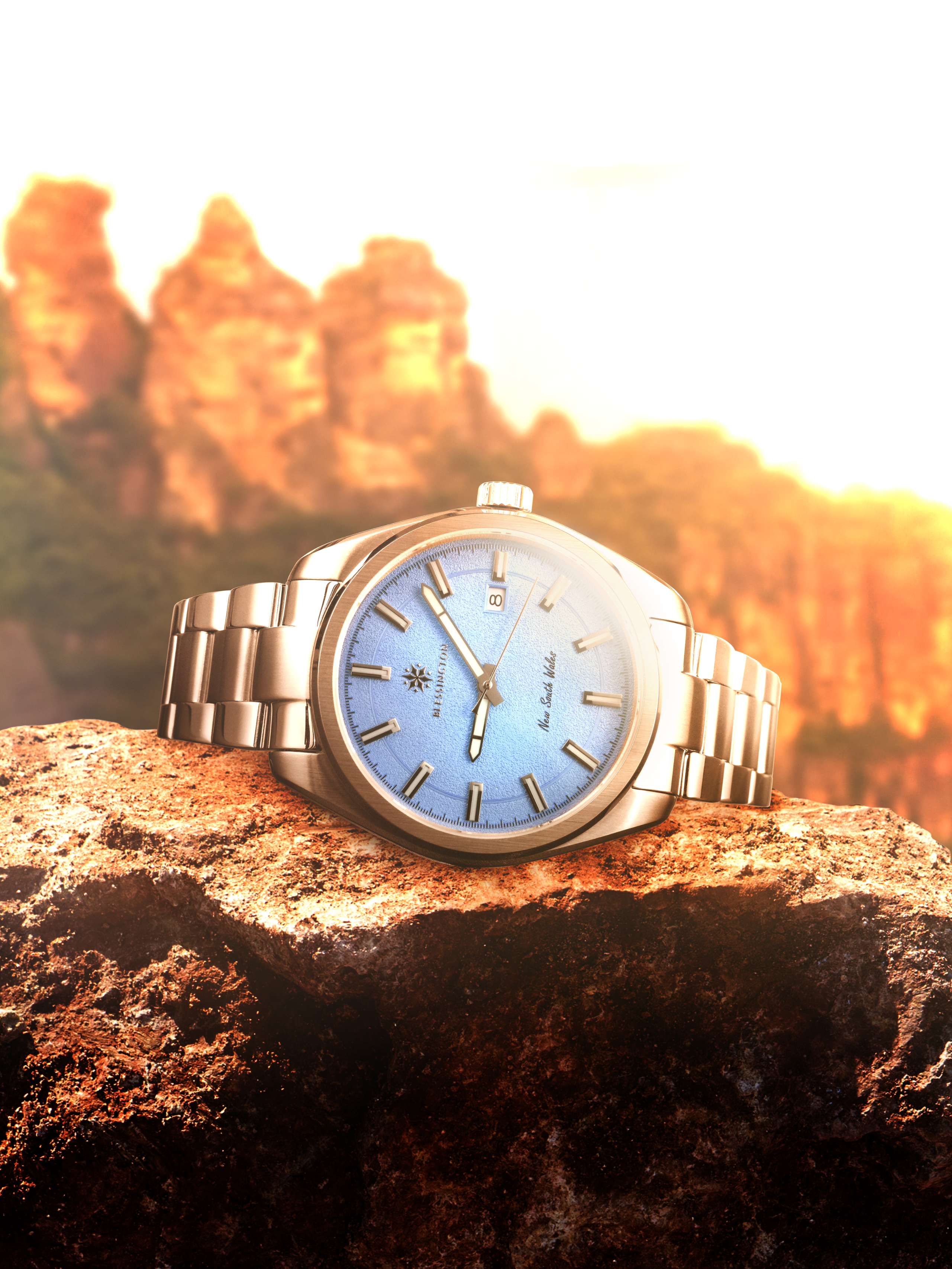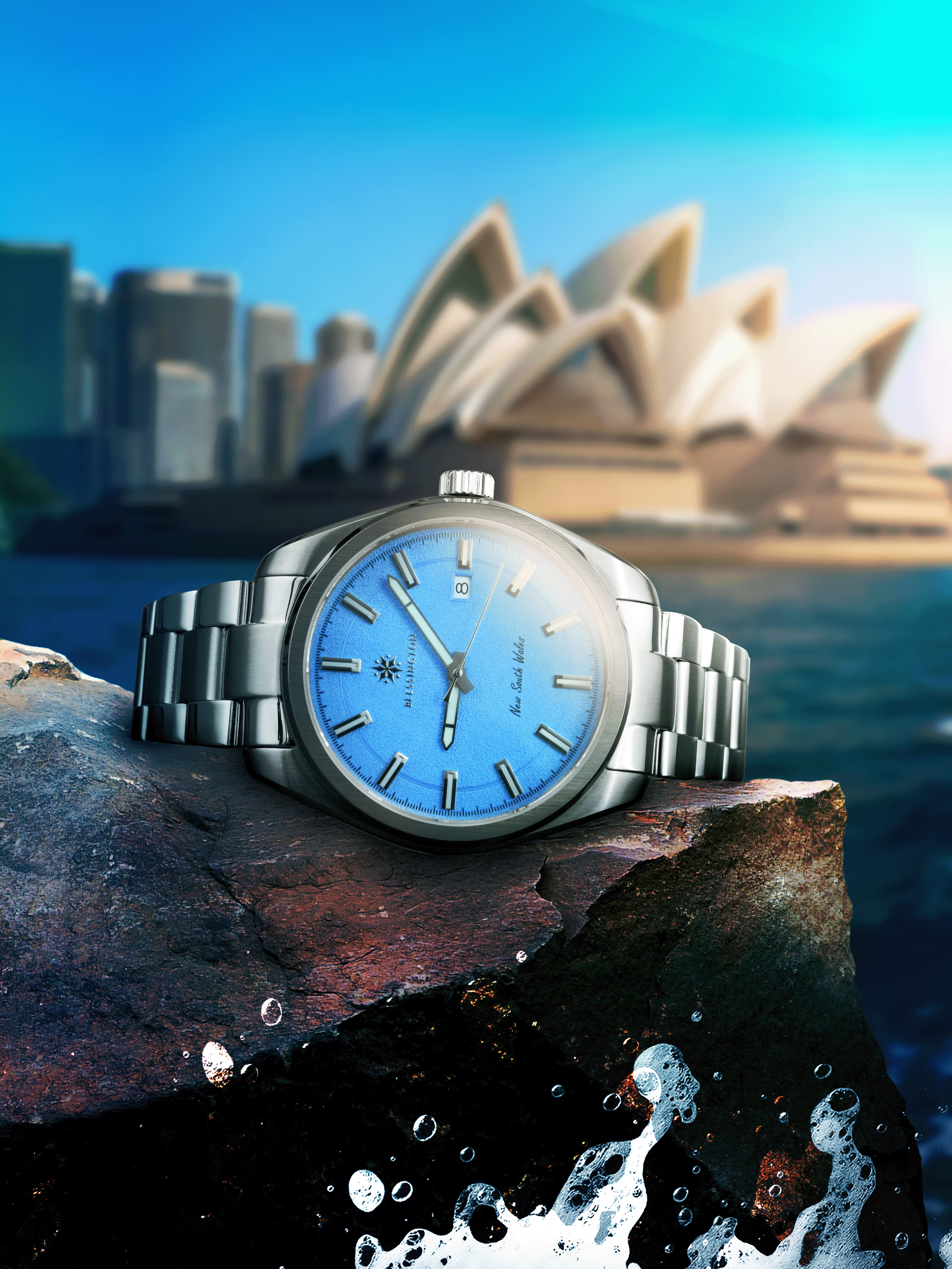 Finished in a smooth, matte sky blue, the dial is colour-matched directly to the official state colours of New South Wales as recognised by the Australian government. It’s a shade that speaks instantly to home, our home. whether it's the blue of the flag, the local footy jersey, or the skies stretching over Sydney Harbour, it resonates with us.
