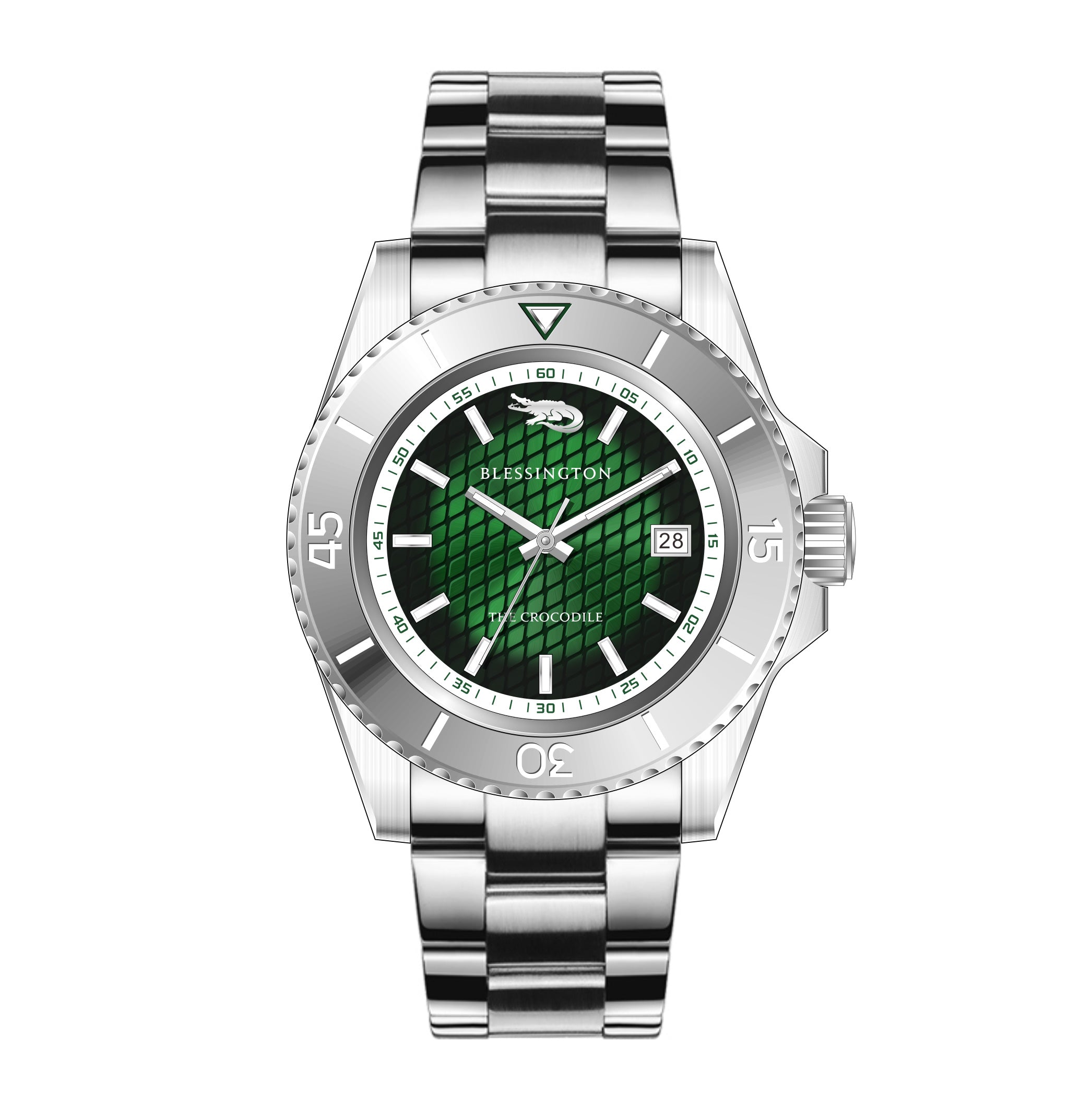 Fitted with Japanese super lume, the Tungsten Crocodile delivers a bright, long lasting glow in low light conditions. The luminous elements cut cleanly through darkness, reinforcing legibility while reflecting the predator’s ability to operate with total control at any hour.