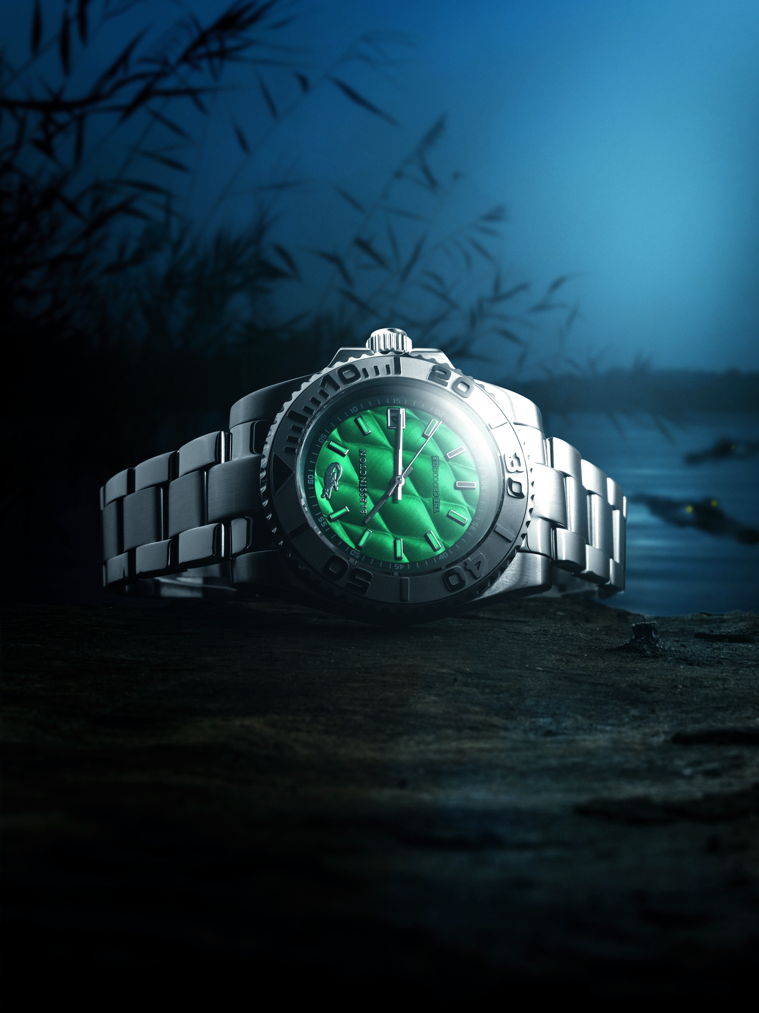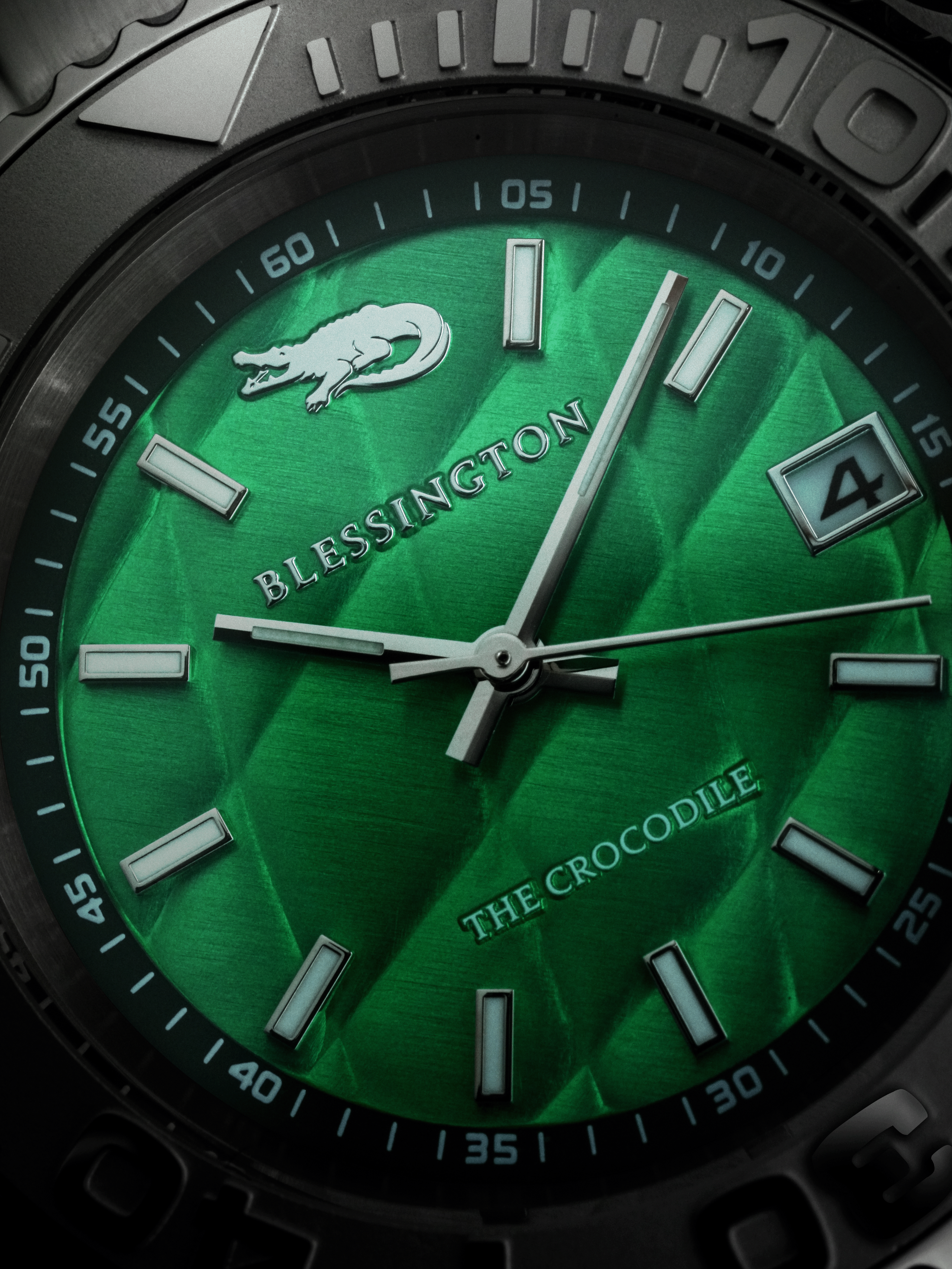 Introducing the Crocodile timepiece by Blessington—a sleek and formidable watch inspired by the timeless elegance of the crocodile. Crafted with precision and finesse, this watch exudes sophistication and strength. Its sleek design and robust construction make it a versatile companion for any occasion. With its distinct allure, the Crocodile watch is sure to command attention and admiration wherever it goes.