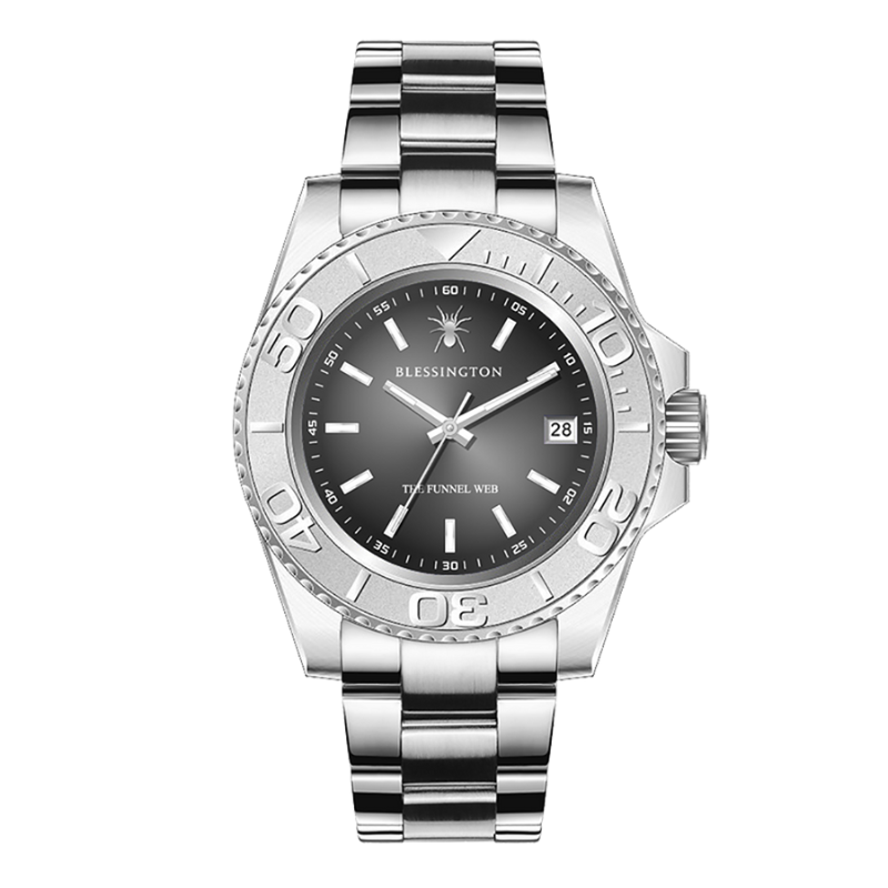 Introducing The Funnel Web watch by Blessington—a bold and formidable timepiece inspired by the stealth and power of the Australian Funnel Web spider. With its sleek black design and intricate details, this watch exudes confidence and strength. Crafted with precision and durability in mind, it is built to withstand the rigors of everyday life while making a bold fashion statement. Whether worn in the office or on an outdoor adventure, The Funnel Web watch commands attention and admiration with its unmistakable presence.